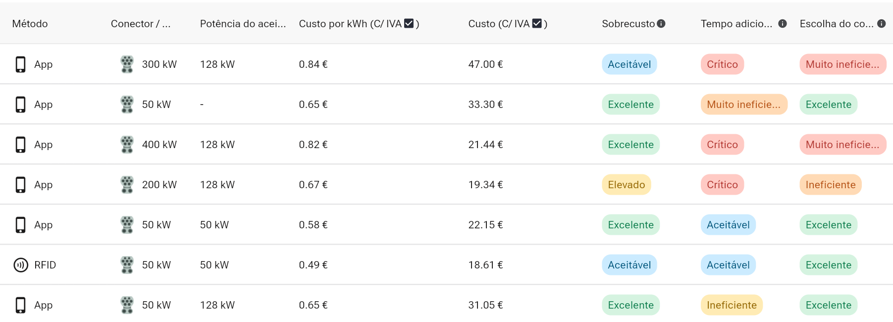 - TOP 10 dos postos de carregamento mais baratos na localização do condutor.